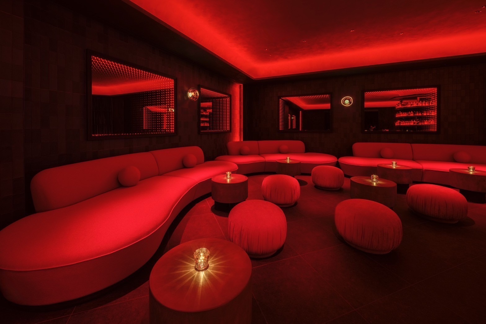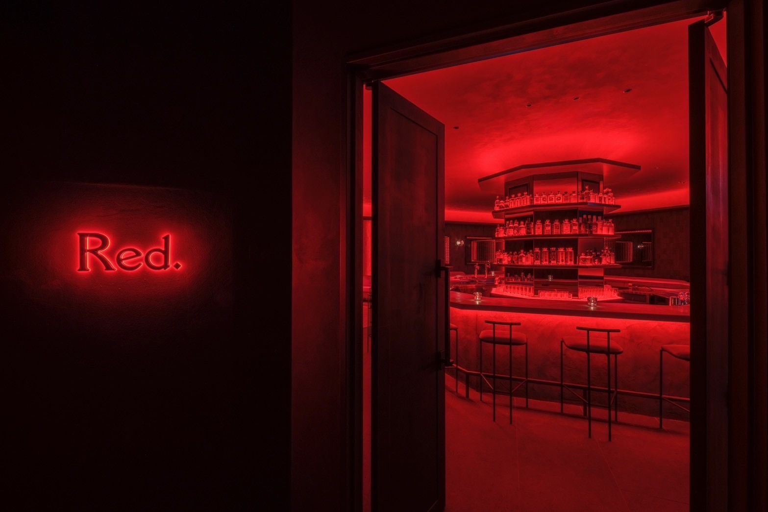 After our flavorful encounter, we take the elevator from Batida, down to Bar Red, and instantly it feels like entering another world — an underground experience.