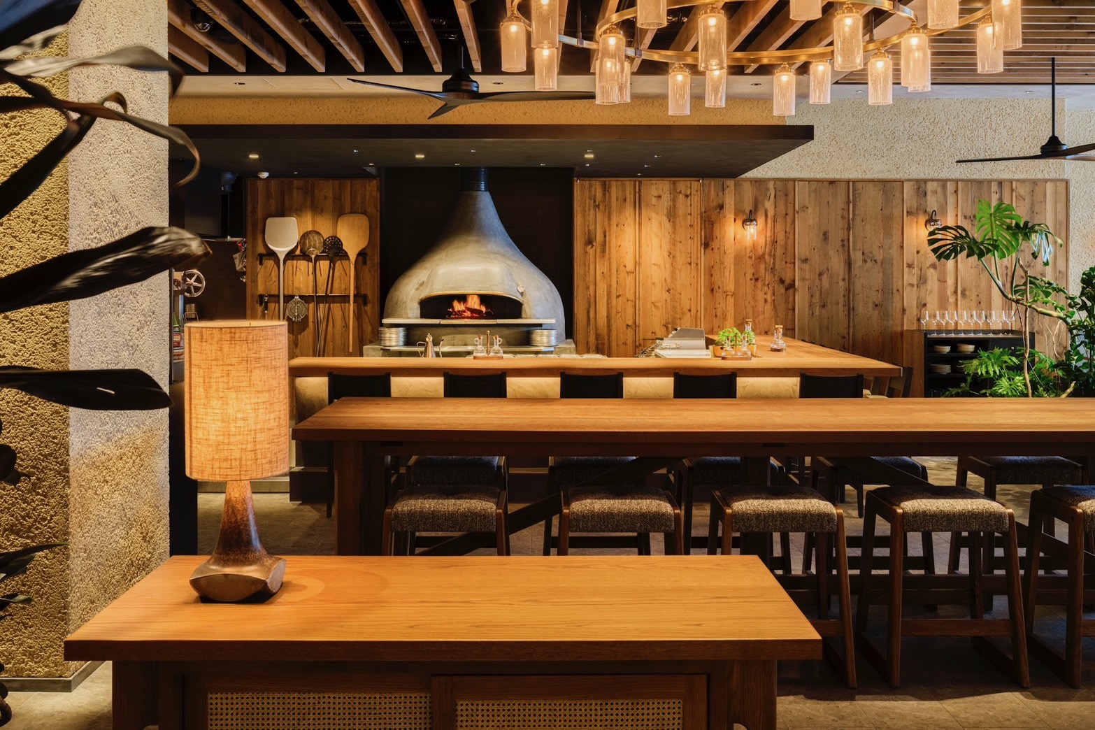 The wood-fired pizza oven inside Batida on Ishigaki Island, used to craft handmade pizzas with local ingredients.